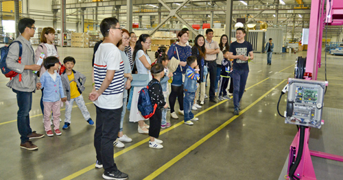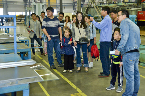 早上8時,打扮成馬里奧、阿拉蕾等卡通人物的團委成員們早早在大門口迎接小朋友們的到來,活潑的造型引得小朋友們爭相合影。簽到過后,每位小朋友都領到了一份精心準備的小禮品;隨后,在爸爸媽媽的陪伴下,孩子們分兩組參觀了車間和辦公樓——爸爸媽媽工作的地方,這讓他們興奮不已。