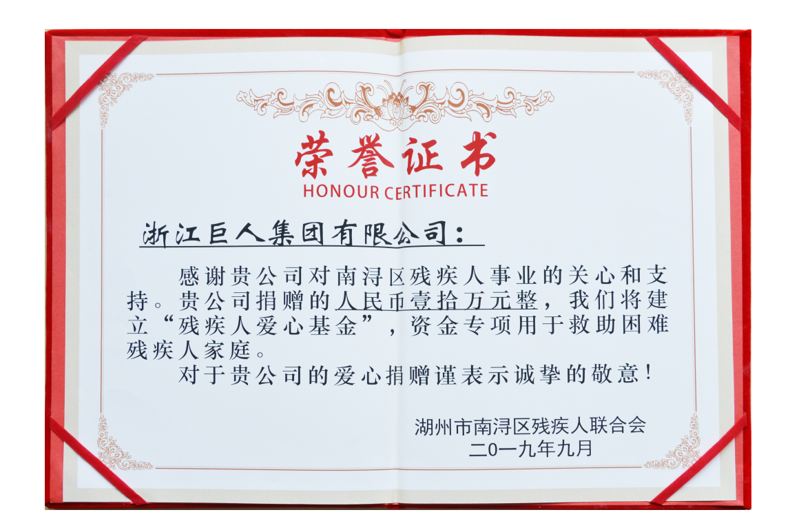點滴之聚,終匯成江海。巨人集團作為南潯本土企業,始終秉持“敬天愛人”的經營原理,倡導“利他”核心價值觀,把踐行企業社會責任當做重要使命,積極開展扶貧幫困、捐資助學、公益環保等領域的慈善活動。此次愛心捐贈為南潯助殘扶殘事業略盡綿薄之力,為社會傳遞溫暖正能量。