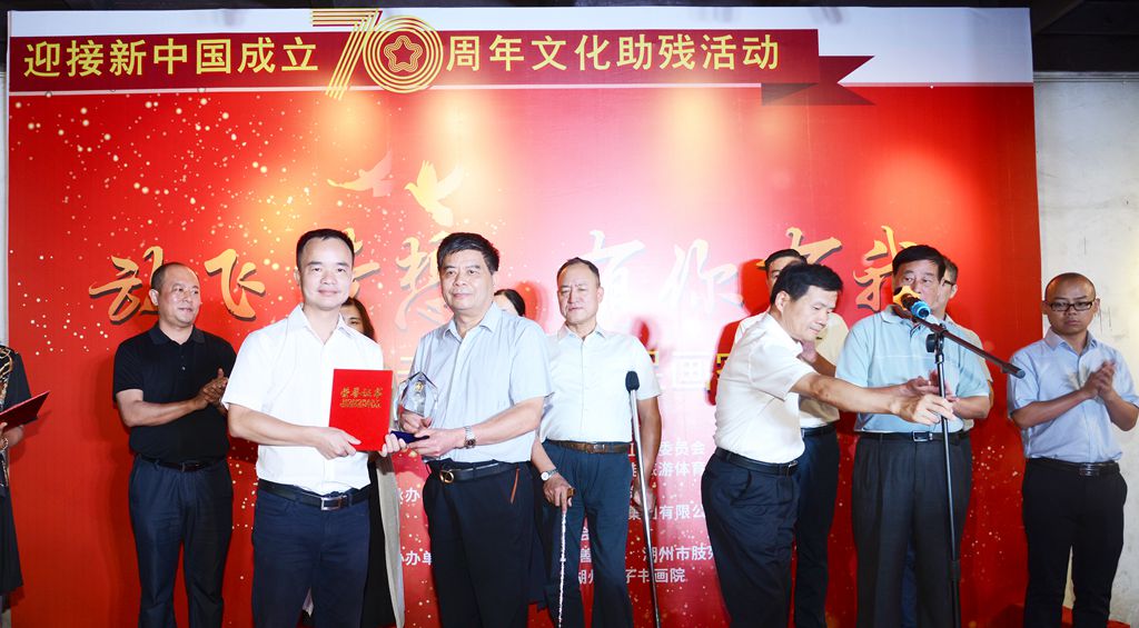 9月16日,南潯區殘疾人聯合會舉辦“迎接新中國成立70周年文化助殘活動——‘放飛夢想,有你有我’無翼之翔口足畫家書畫聯展”。開幕儀式上,巨人集團向南潯區殘疾人聯合會“殘疾人愛心基金”捐款10萬元,獲得由區殘聯頒發的“殘疾人愛心基金公益愛心企業”榮譽稱號。