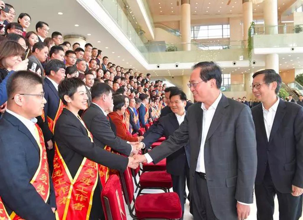 會前,車俊等與會領導看望受表彰代表