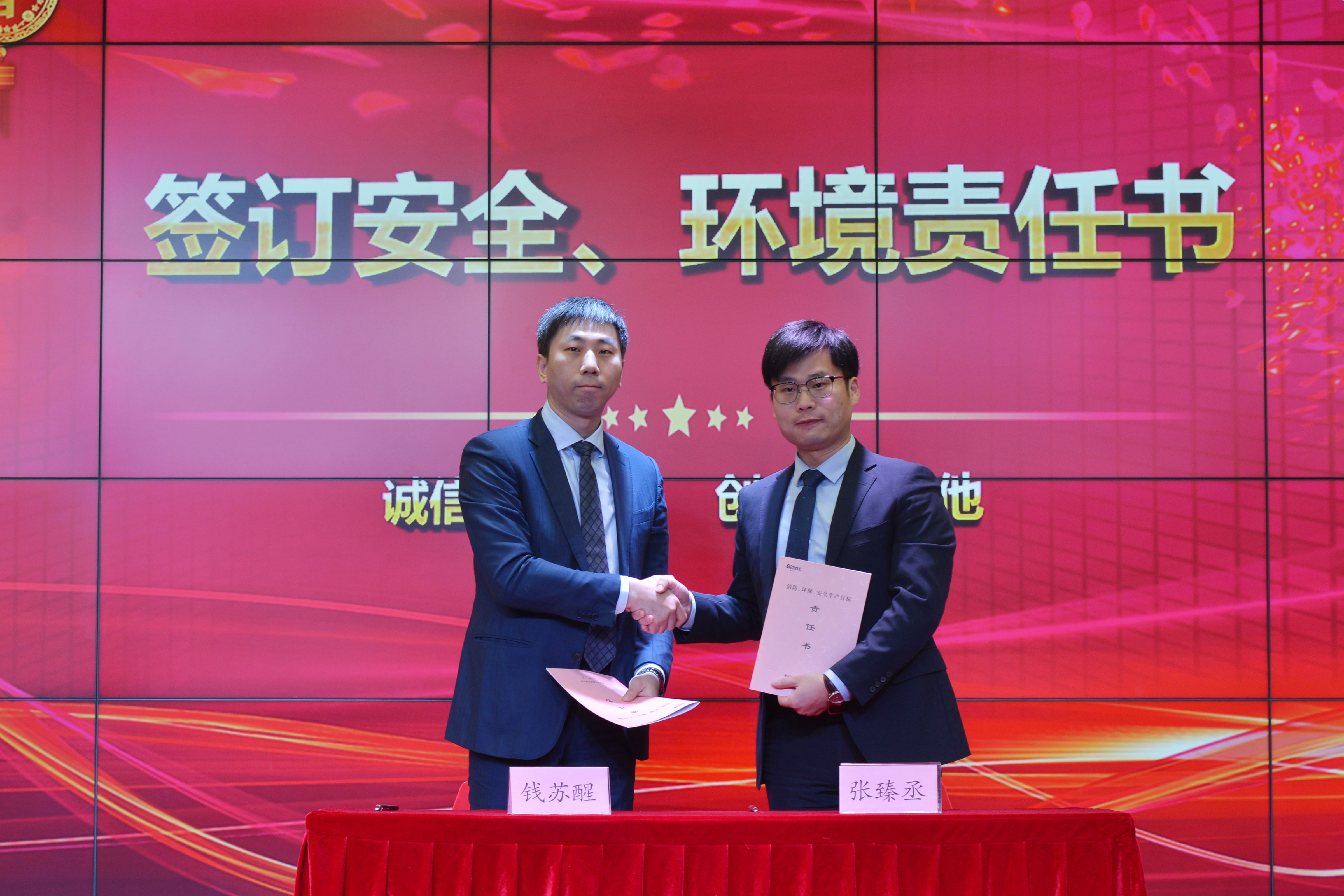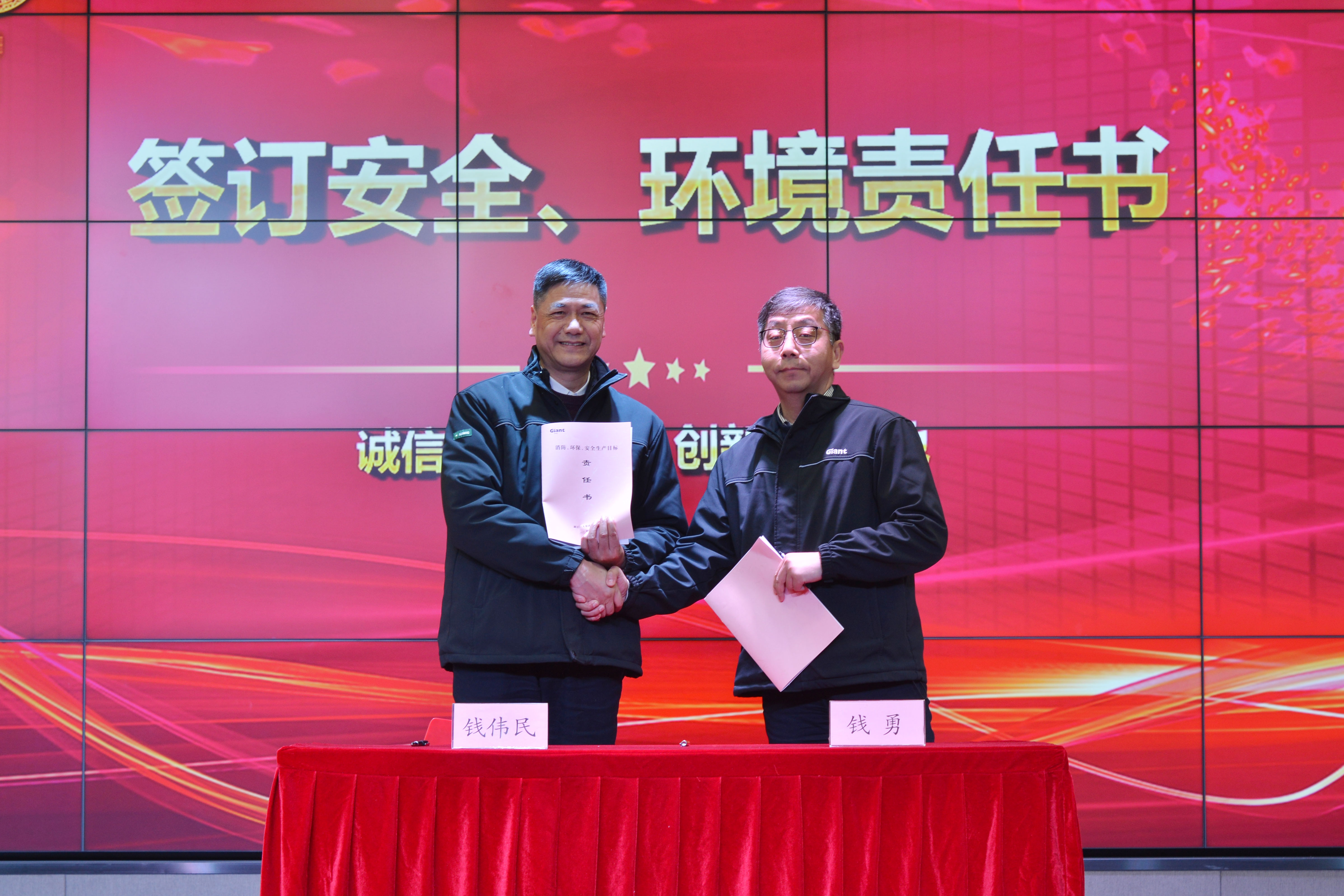 安全生產管理守護著員工物心幸福與生命健康以及企業社會責任,是公司頭等大事,大會舉行年度安全責任書簽訂儀式,公司副總經理顧惠江作安全與環境教育宣講。